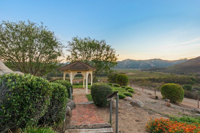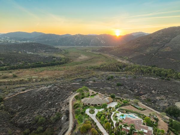 Truly exceptional 280-degree views stretching across Lake Hodges Preserve and the surrounding hillsides define this custom single-story home in Lomas Serenas. Nestled on a peninsula-shaped lot of just over two acres, the residence sits at the very end of a cul-de-sac, offering unmatched privacy and serenity surrounded by lush natural landscape including mature fruit trees. Designed and built by a custom builder to maximize natural light and frame the scenery from the primary suite, kitchen, and family room, this is the first time the property has ever been on the market. The floorplan provides expansive gathering areas, a spacious kitchen, and wide window lines that capture stunning western views. The single-level layout flows easily to outdoor terraces and garden spaces, creating a seamless indoor-outdoor connection ideal for Southern California living. Solar power, a generous driveway, 3-car garage and ample parking complement the private estate setting. Located in sought-after southwest Escondido, the property offers convenient access to the I-15, a short drive to major shopping and dining in Rancho Santa Fe and Westfield Escondido mall, plus close proximity to the Safari Park, wineries, golf, Lake Hodges trails, and Kit Carson Park. Opportunities to own a home with this level of privacy, space, and unobstructed Lake Hodges Preserve views are rare in Lomas Serenas. This is a chance to reimagine a one-of-a-kind estate with breathtaking scenery into your dream home.